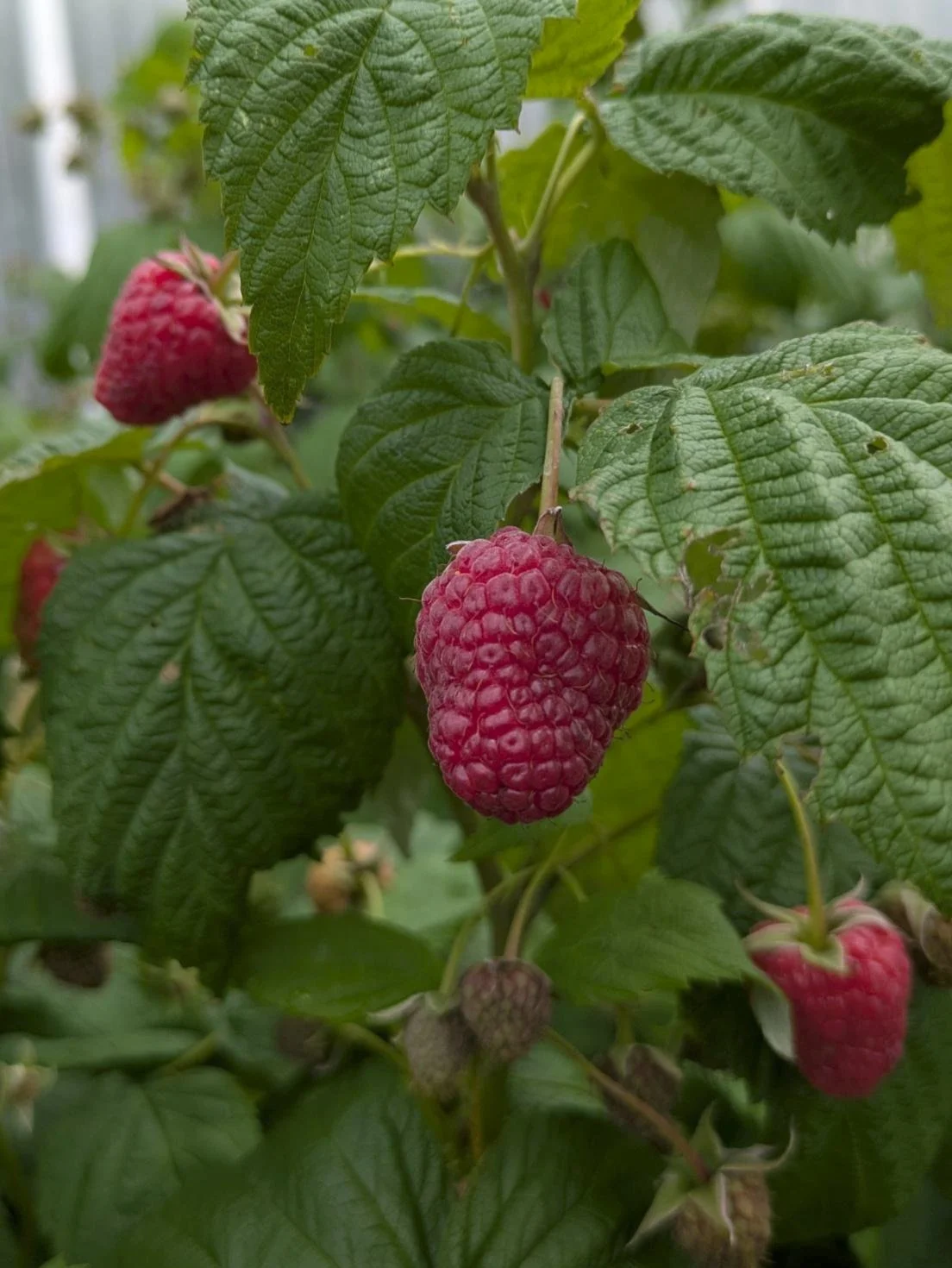 Schnitt: Im Herbst, sämtliche Triebe abschneiden und mit Laub bedecken. Im Frühjahr die neuen Bodentriebe ausdünnen. Bei Sommer-Himbeeren pro laufendem Meter 10 bis 12 kräftige neue Ruten stehen lassen, bei Herbst-Himbeeren etwa 20 (ca. 1 per 100cm2).